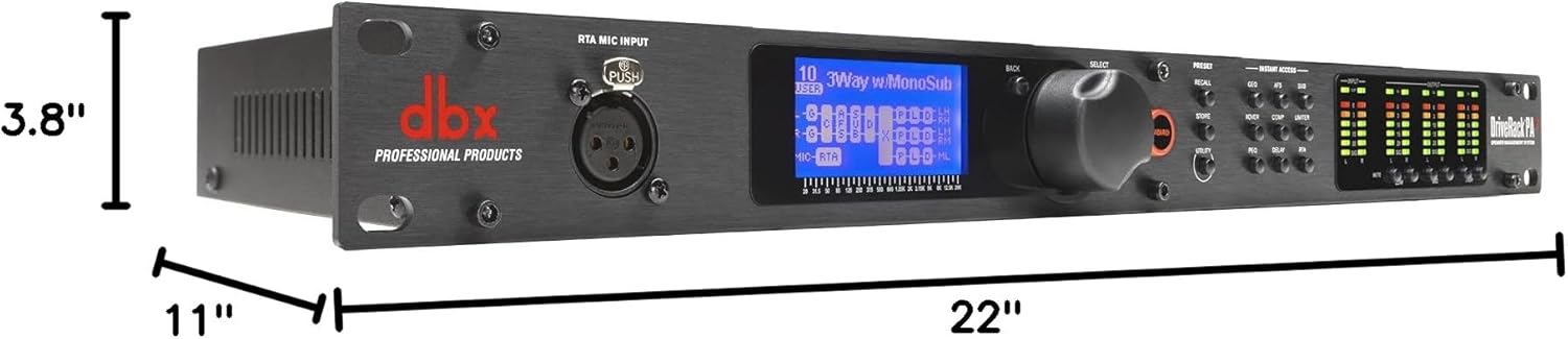 dbx DriveRack PA2 Two-Input, Six-Output Complete Loudspeaker Management Processor with LCD Display & USB Connector, Black, 3.80 x 11.00 x 22.00 inches